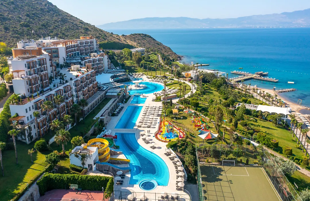 Dieses 5-Sterne Kefaluka Resort Ultra All Inclusive ist etwa 60 km vom Flughafen Bodrum-Milas entfernt und bietet ein Wellnesszentrum, eine Wellness-Lounge und ein Solarium an. Das Hotel mit einem Swimmingpool liegt im Geschäftsbezirk ganz in der Nähe von der Bucht von Akyarlar.
